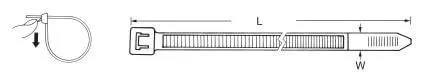 本色 ▼ | 黑色 ▼ | 長度(dù) mm(in.) ▼ | 寬度 mm(in.) ▼ | 最大束徑 mm ▼ | 最小拉力 kg(Lbs) ▼ | 包裝(條/包) ▼ |